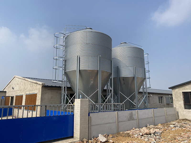 40°料塔倉頂為料塔提供了更大的強度和容量,還可防雨水進入料倉。料塔底部漏斗形狀設計,為飼料輸送提供條件。